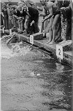 Natürlich nahmen wir auch an diversen Schwimmwettkämpfen der Wasserwacht teil. Unter anderem auch an dem von der Deggendorfer Wasserwacht am 2. September 1951 im Alten Freibad veranstalteten Schwimmfest.
