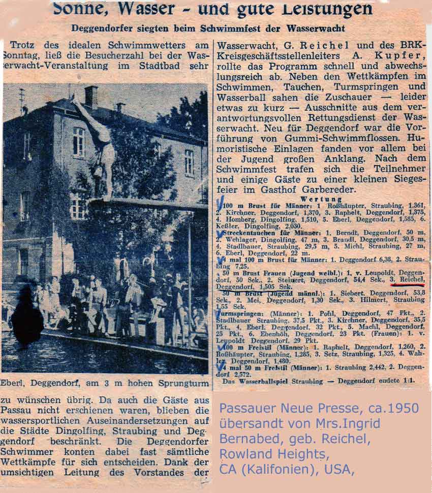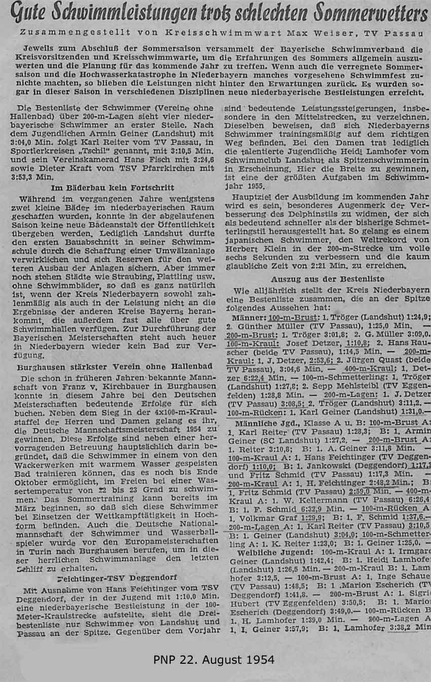 Die Passauer Neue Presse brachte damals in der Ausgabe vom 22. August 1954 den nachstehenden Bericht des Kreisschwimmwartes Max Weiser (+) aus Passau: