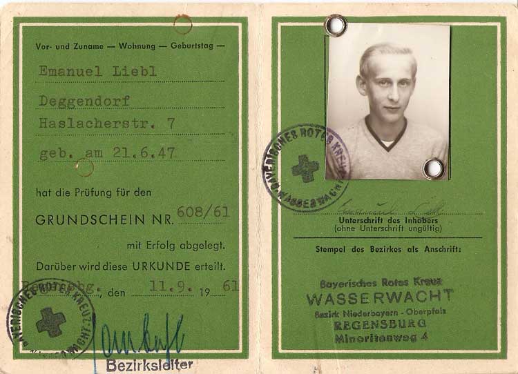 Wir, die Jungen in der Wasserwacht, verrichteten mit Begeisterung Wachtdienst im Bad oder an der Donau. Dort besonders gerne, weil wir mit den "Großen" ganz alleine über Nacht zelten durften. Ich erinnere mich immer noch mit Gänsehaut, wie wir eine im Fluss treibende, aufgeblähte Leiche bargen, die dann, die die Polizei ins Deggendorfer Leichenhaus brachte, wo sie vom Landgerichtsarzt im Auftrag der Staatsanwaltschaft Deggendorf obduziert wurde.